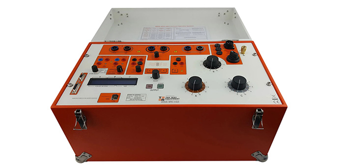 The unit has three independent outputs, each for a phase. The output is isolated and independently variable, and it allows for the injection of currents up to 200A. The digital true RMS system with a 3.5 digit LED display meters the output. Illuminated push buttons switch the output on and off, while the current is set using three control knobs on the front panel. All ranges are continuously variable from zero, and a switched, isolated auxiliary 240V 50mA AC supply is available to power auxiliary control circuits.